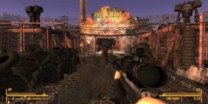 Fallout 2 starts with a scene of the Enclave mowing down a family, a fitting introduction for the most out-of-pocket Fallout experience available. The humor turns meta, with gravestones featuring names of the developers out in the world, the ability to prank call the Enclave, and plenty more. It also removes the timer for the main quest, while featuring a much larger world, greatly increasing the freedom of the experience.